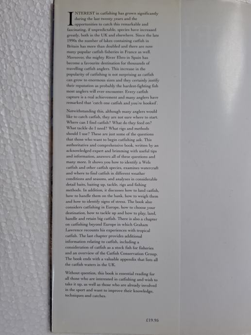 "Written by a highly respected, specialist catfish angler, this guide considers watercraft and where to find catfish in the UK in different weather conditions and seasons; discusses all the available baits and baiting up; meticulously analyzes tackle, rigs, and methods, including using static baits, livebaits, and lure; demonstrates how to land, handle, weigh, and safely retain catfish of all size; covers catfishing in Europe, Africa, Asia, and elsewhere; and includes a definitive list of UK catfish waters." (amazon.com)