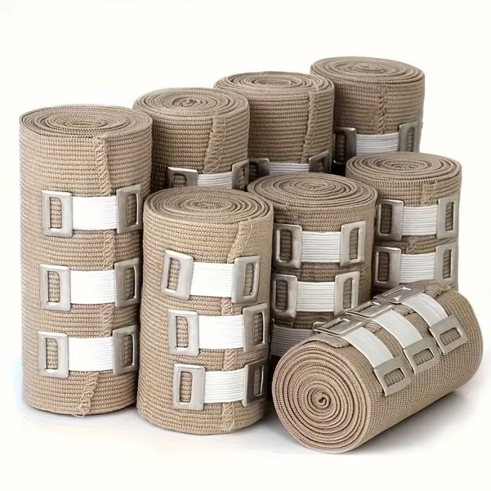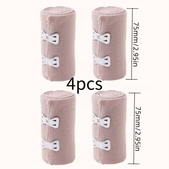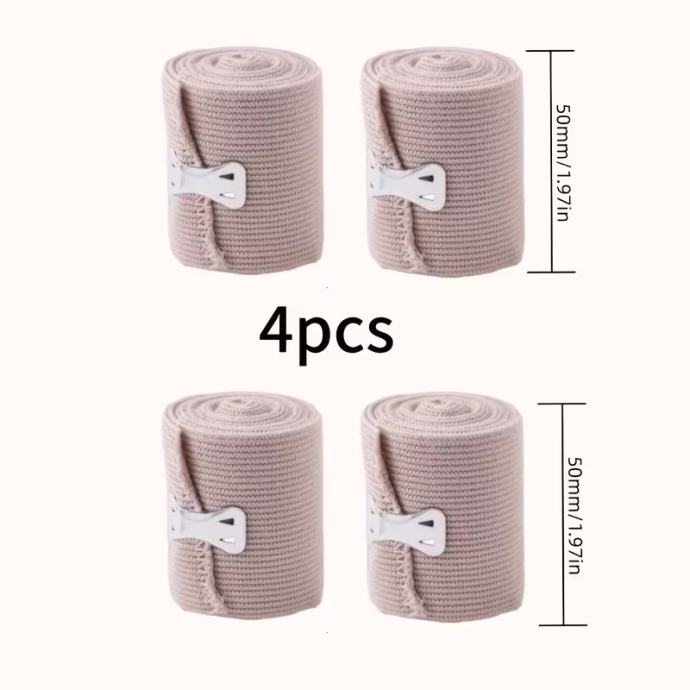 4 kom. podesivi elastični zavoji u roli - uvlačivi do 4,4 metra, svijetlosmeđi s bijelim trakama, za potporu zapešća, gležnja, stopala i koljena - idealni za sport, fitness i svakodnevnu upotrebu