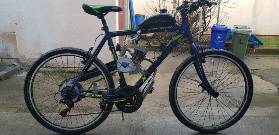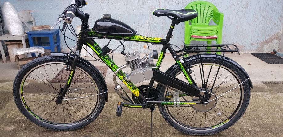 NOVI BICIKL EXPLORER 26 COLI BRZINAC, DUPLE FELGE, JAKA RAMA, ŽUTO-ZELENI I PLAVI, SA MOTOROM 50 CCM 2900 KN, 80 CCM 3000 KN. MOGUČNOST UGRADNJE BLATOBRANA I PAKTREGERA 150 KN.