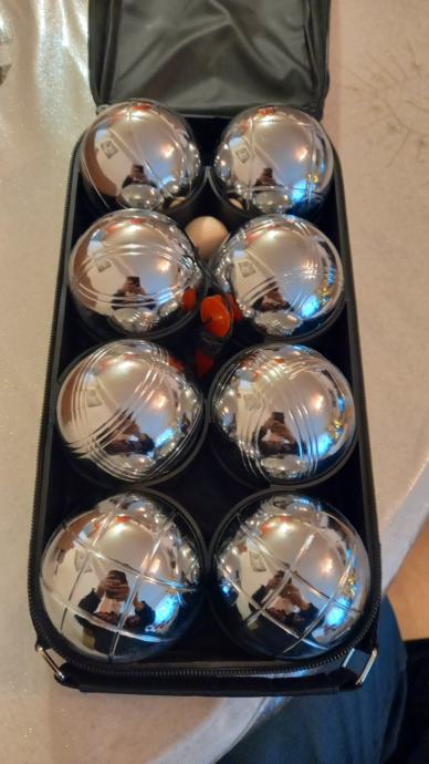 Prodajem potpuno novi komplet boća u praktičnoj torbi za nošenje. Set sadrži osam sjajnih metalnih boća idealnih za rekreativno ili profesionalno igranje. Savršeno za druženje s prijateljima ili obiteljske aktivnosti na plaži ili u parku.