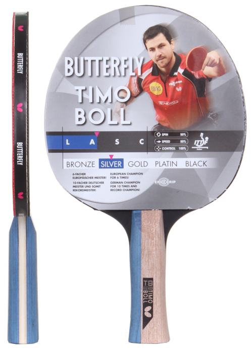 Reket za stolni tenis Boll Silver 17 iz kolekcije Butterfly 2017 dizajniran je za početnike. Anatomski grip i Addoy guma debljine 1,7mm Vam pružaju najveću udobnost i kontrolu pri treningu.
