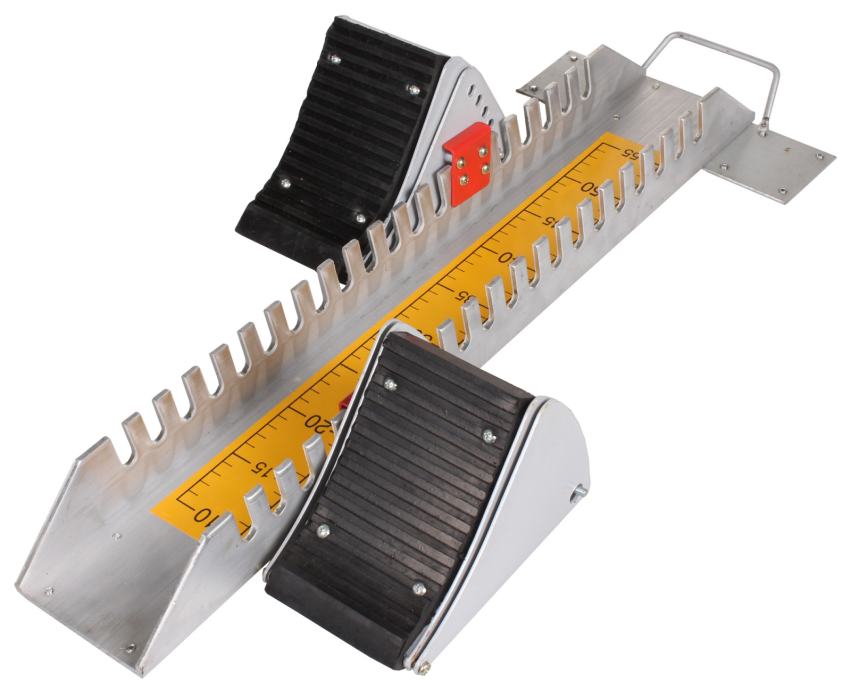 Startni blok s bazom duljine 64 cm, širine 10 cm od visokokvalitetne slitine aluminija s dvadeset žlijebova za horizontalno podešavanje aluminijskih papučica. Papučice su podesive na sedam različitih stupnjeva nagiba, čvrste su, ergonomskog oblika i protuklizne površine. Kompletni blok je težak 4,7 kg i pogodan je za umjetne atletske površine.