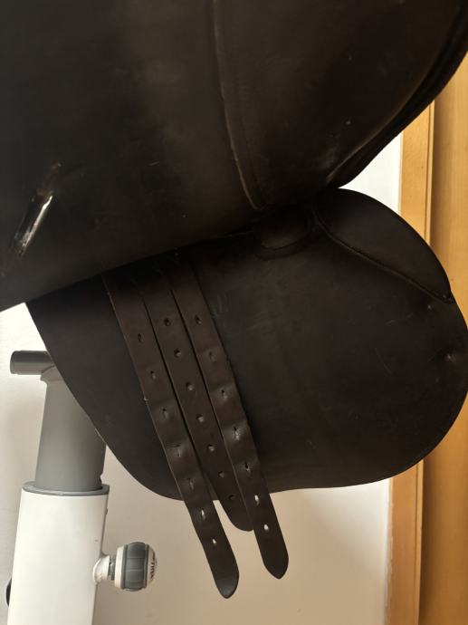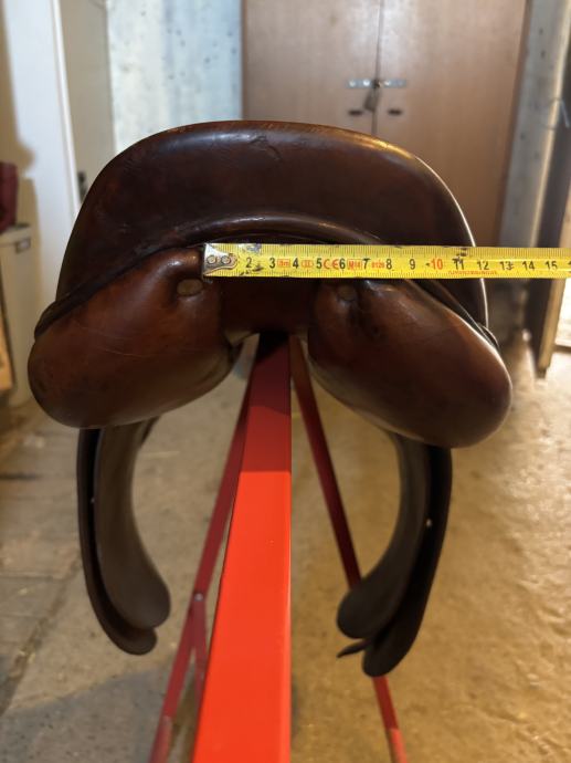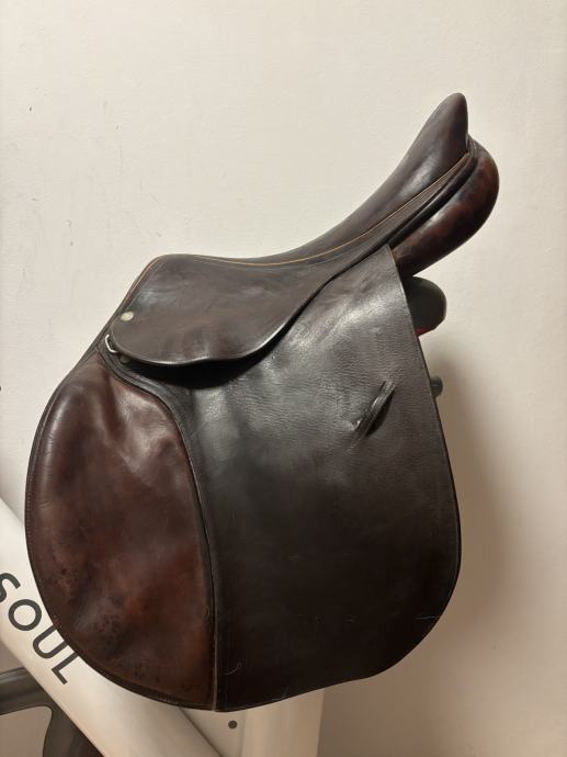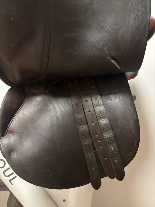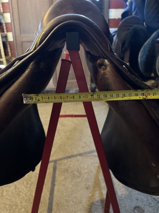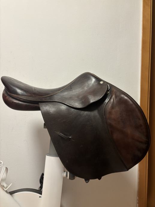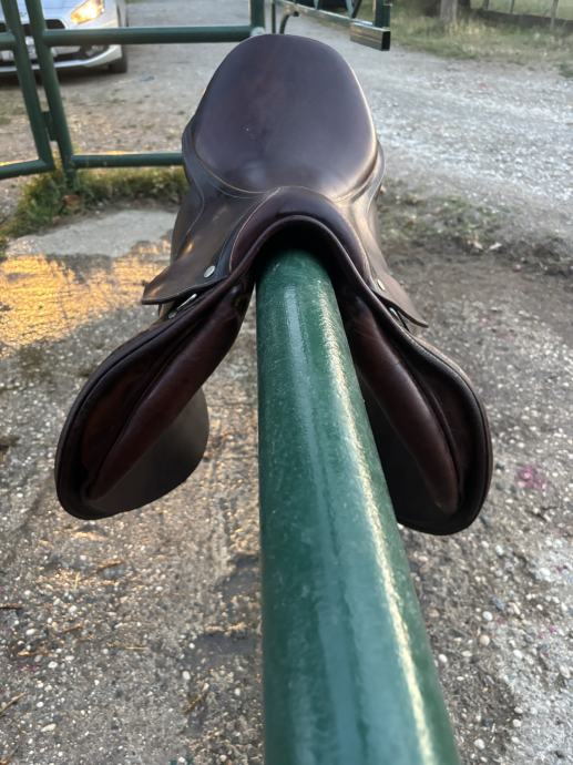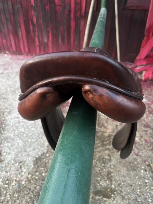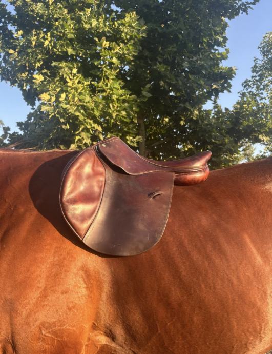 Smeđe preponsko sedlo, 17”, vrlo udobno, za uže konje, nažalost mom konju više ne odgovara, ima malih tragova korištenja