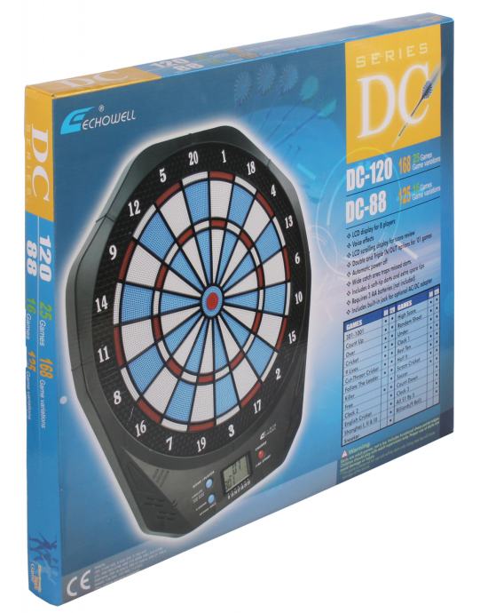 Elektronički pikado Echowell DC 88 nudi 16 igara sa 125 varijanti igre. LCD zaslon pogodan je za do 8 igrača, jednostavno se njime upravlja, ima zvučne efekte te se automatski isključuje nakon duljeg vremena neaktivnosti. U pakiranju dolazi i 6 strelica s plastičnim vrhovima te set zamjenskih vrhova. Ukupne dimenzije ploče su (V x Š x H) 52 x 45 x 3,5 cm, težina je 1,95 kg. Pikado se napaja uz pomoć 3x AA baterije ili AC/DC adapterom (baterije i adapter ne dolaze u kompletu).