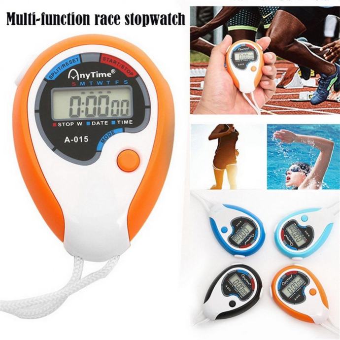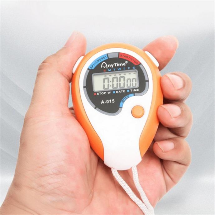 Digitalna sportska štoperica s špagicom za nošenje oko vrata.