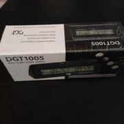 Digitalni sat crne boje s priloženom baterijom u kutiji. Prikladan je za razne društvene igre za mjerenje vremena, posebno za igrače igre "go".