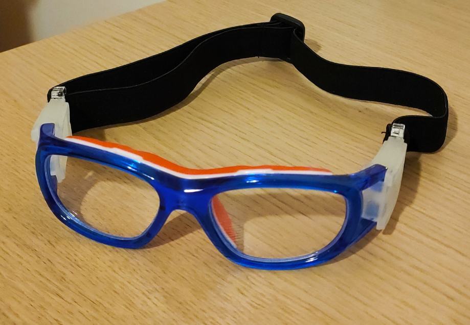 Prodajem sportske naočale za sve sportaše i rekreativce koji imaju poteškoća s vidom a pogodne su za gotovo sve sportove, kako na otvorenom tako i u zatvorenom prostoru. Naočale su potpuno nove i kvalitetne. Možete ih koristiti za gotovo SVE sportove uključujući i one kontaktne jer nema opasnosti od ozljede- između lica i okvira imaju meki zaštitni sloj koji apsorbira eventualni udarac lopte. Ovaj sportski okvir za naočale je otporan na jake udarce i pruža najbolju zaštitu. Dimenzije naočala sa prve slike možete vidjeti na slici br.2. dok su dječje naočale bitno manjih dimenzija. Naočale sadrže i udobnu traku koja ide oko glave i čija duljina se može lako podesiti i nema opasnosti od toga da će naočale pasti. Kod narančastog kruga sa strane postoji i mogućnost skidanja naočala sa trake kako bi ih lakše stavili u kutiju za naočale. Slične je nosio i poznati nogometaš Edgar Davids.