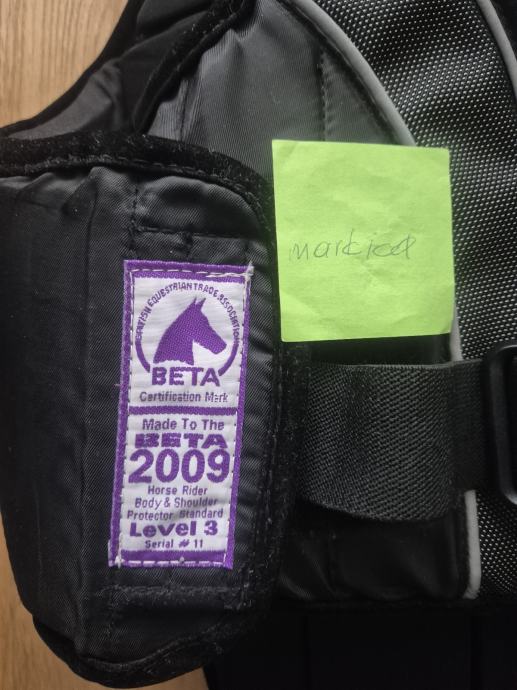 Prodaje se dječji zaštitni prsluk za jahanje tj. štitnik za leđa. Jednostavno izgleda kao mala pancirka.