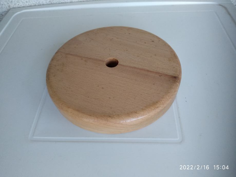 Drvena baza za štap sa zastavicom ili slalom, vanjski promjer baze 18 cm, debljina baze 32 mm, promjer rupe za štap 17 mm