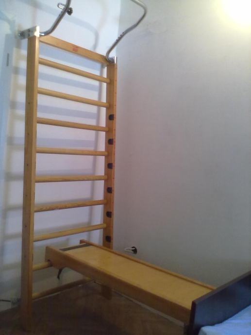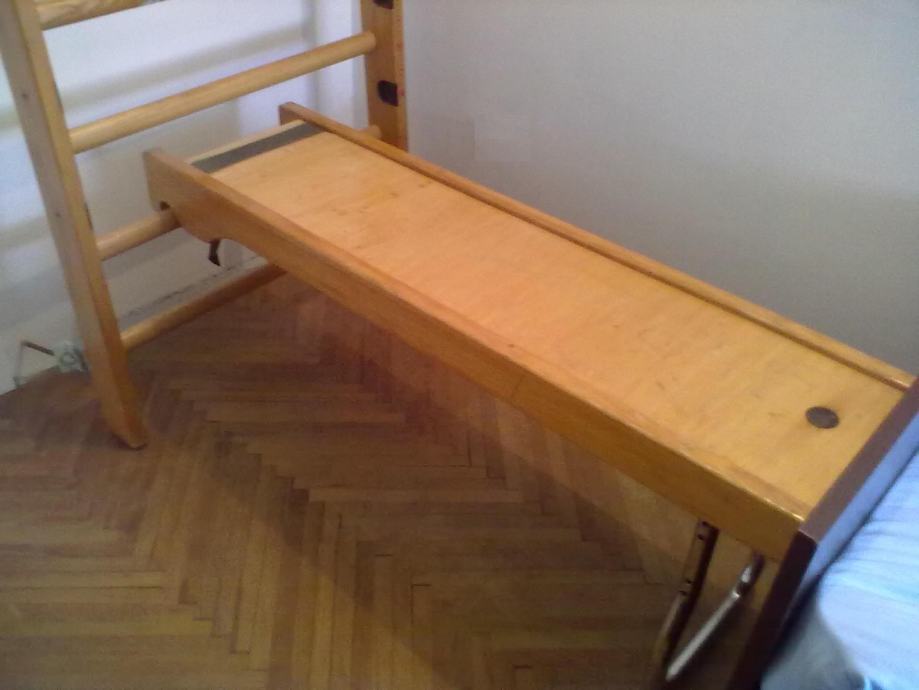 Prodajem rabljeni komplet za vježbanje ELAN TRIM LET. Sastoji se od švedskih ljestvi, šipke za ¸zgibove i podloge za dizanje utega. Švedske ljetsve su veličine (200cm*78.5cm), a podloga je veličine (125cm*35cm), a šipka za zgibove je podesive visine. Klupa se jednostavno rasklapa ako zauzima prostor. Cijeli set je u odličnom stanju. Cijena kompleta je 1000kn fiksno, a za više informacija nazovite na broj mobitela 0998757436 ili na mail.