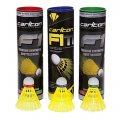 Zbog svoje žute boje Shuttlecocks Carlton F1 Ti Yellow loptice za badminton su česte za vidjeti u dvoranama s bijelim zidovima. Ove loptice imaju istaknute karakteristike letenja i pogodne su za profesionalne igrače. Zahvaljujući posebnom materijalu, dodatku plastičnih dijelova ove loptice su izrazito trajne.