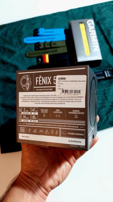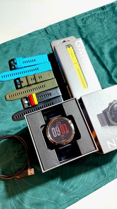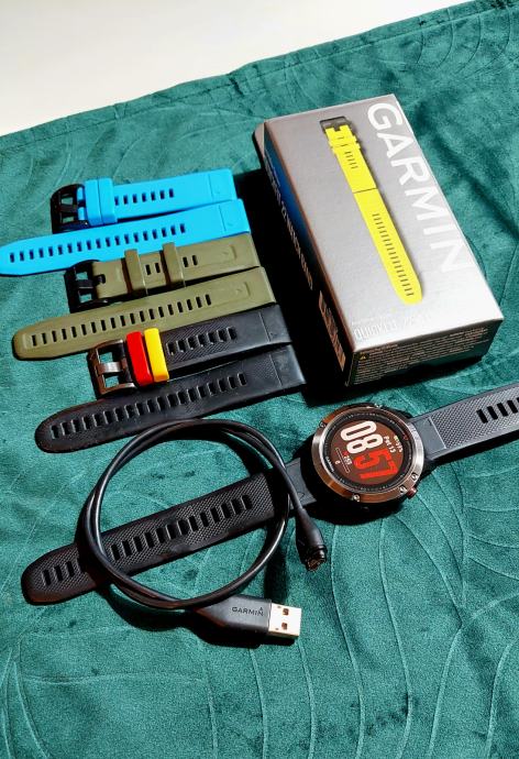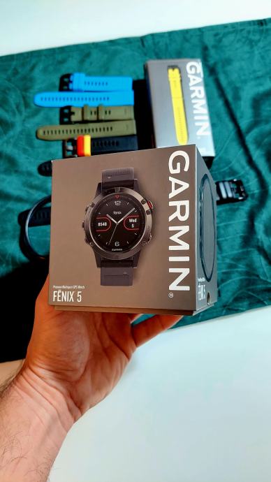 Prodajem multisportski GPS sat GARMIN Fenix 5 u slate gray boji kučišta, u super stanju kupljen u Emmezeti novi. Sat dolazi u orginalnom pakiranju s dva orginalna quickfit remena (silikon: žuti i crni) i tri zamjenska quickfit remena (silikon: crni, plavi i zeleni), te orginalnim kabelom za punjenje.