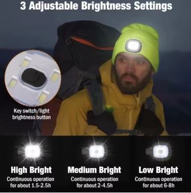 kapa je udobna i topla te ima 3 moda osvjetljenja, malo, srednje i jako osvjetljenje