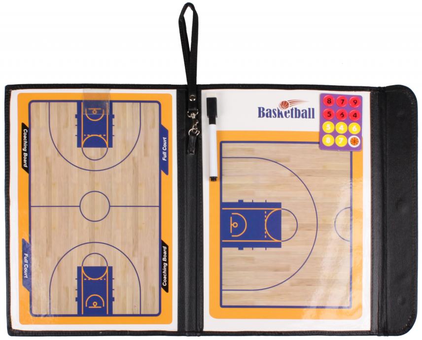 Trenerska ploča za košarku neizostavan je dodatak za svakog košarkaškog trenera tijekom svake utakmice. Taktička ploča za košarku Merco BASKETBAL 42 sastoji se od dvije magnetske ploče sa slikama u boji, jedna s polovicom, druga s cijelim košarkaškim terenom. Ploče su zaštićene crnim koricama od sintetičke kože. Uz košarkašku ploču Merco BASKETBAL 42 dobivate komplet magneta, marker i remenčić za ruku kako bi vam tijekom utakmice uvijek bila na dohvat ruke.