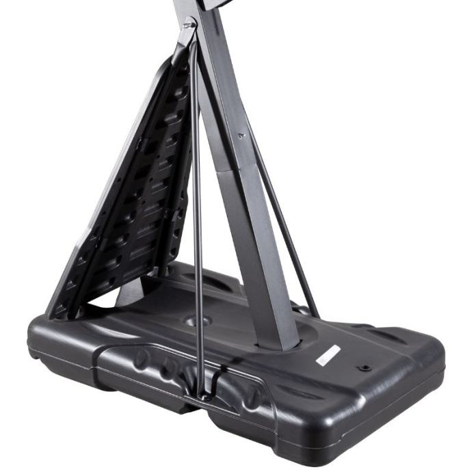 Samostojeći košarkaški koš za zahtjevne kućne korisnike, s tablom od polikarbonata otpornom na udarce koja osigurava odličan odskok lopte. Stalak se može napuniti s do 120 kg vode ili pijeska (preporuča se pijesak). Čvrsta čelična konstrukcija od debele cijevi i otporne ploče osiguravaju višegodišnju upotrebu koša. Ugrađeni kotači za jednostavno kretanje. Uz koš dolazi čvrsti obruč s oprugama koje omogućuju zakucavanje lopte.Podesiva visina: od 240 do 305 cm (službena visina)Promjer glavne cijevi: 86 mmPromjer obruča: 45 cmMaterijal obruča: čelikMrežasti materijal: najlonDimenzije ploče: 122 x 82 cmDimenzije table: 120 x 75 x 20 cmOsnovni volumen: 120 kg vode ili pijeskaTežina: 42 kgVješanje na obruč nije dopušteno