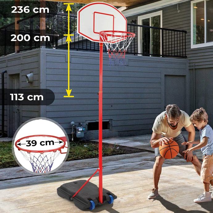 Uz košarkaško stajalište, aktivni treninzi ili spontani turniri s prijateljima sada su također mogući u vrtu ili na imanju. Čvrsta košarica za košarku instalira se u trenu i jednostavno se puni pijeskom ili vodom radi stabilizacije. Može se podesiti na maksimalnu visinu od 2,36 metra i mobilan je zahvaljujući kotačima.