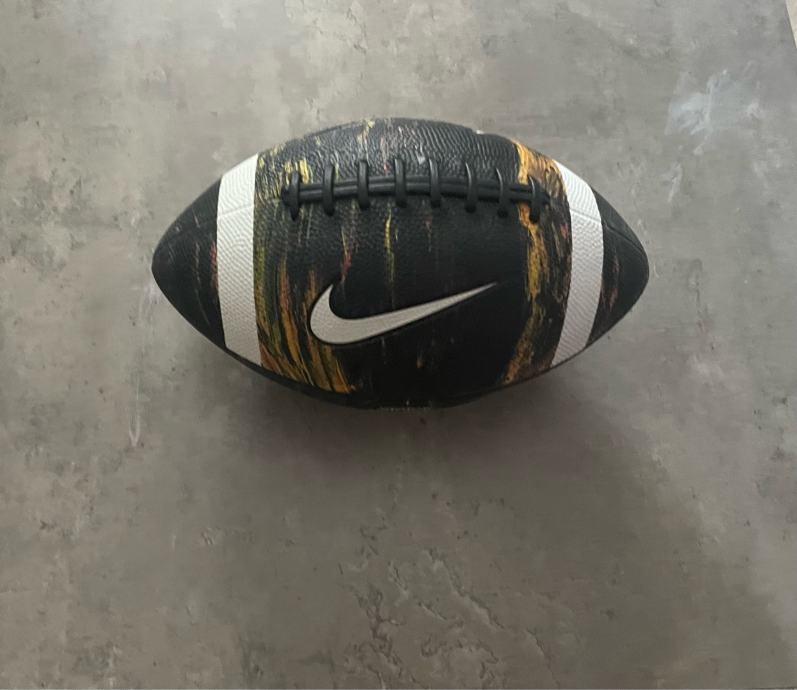 Prodajem potpuno novu loptu za američki nogomet, nikada nije korištena. Nike model s prepoznatljivim dizajnom i bijelim detaljima, savršena za igru ili kolekciju.