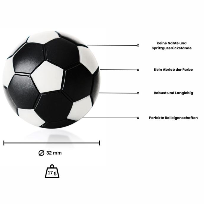 Za svakog igrača stolnog nogometa i ljubitelja nogometa sada postoji veliki izbor različitih nogometnih loptica. Bilo u tradicionalnom crno-bijelom izgledu panela ili u stilu lokalnog nogometnog kluba – ovdje će svaki ljubitelj nogometa pronaći boje svog omiljenog kluba.