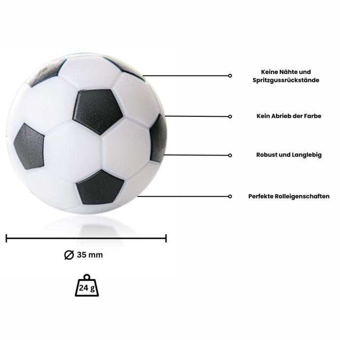 Za svakog igrača stolnog nogometa i ljubitelja nogometa sada postoji veliki izbor različitih nogometnih loptica. Bilo u tradicionalnom crno-bijelom izgledu panela ili u stilu lokalnog nogometnog kluba – ovdje će svaki ljubitelj nogometa pronaći boje svog omiljenog kluba.