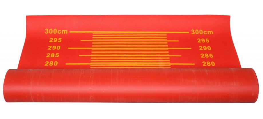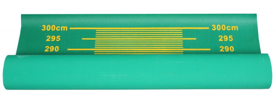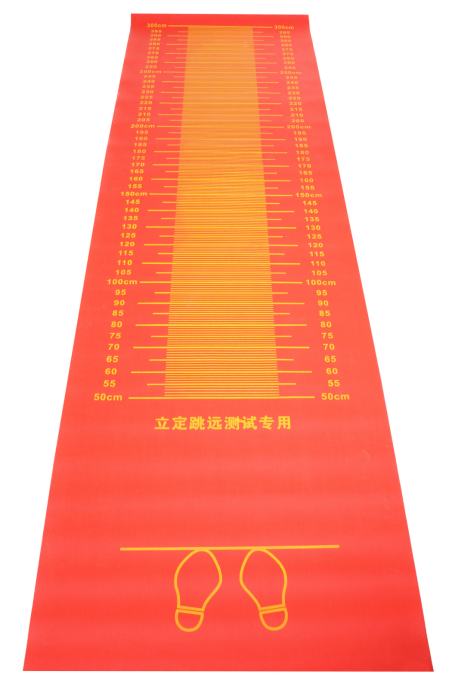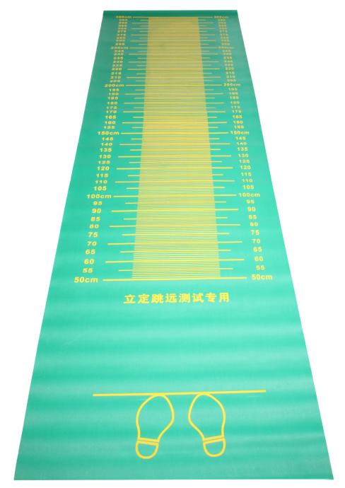 Merco mjerna podloga za skok u dalj s mjesta izrađena je od neklizeće gume debljine 3,5 mm, otporna je na UV zračenje, nije zapaljiva, nije škodljiva za zdravlje, nema miris i lako se održava. Dolazi u zelenoj i crvenoj varijanti boja, dimenzija je 3,5 x 1 m, a mjeri od 50 do 300 cm odraza po 1 cm razlike.