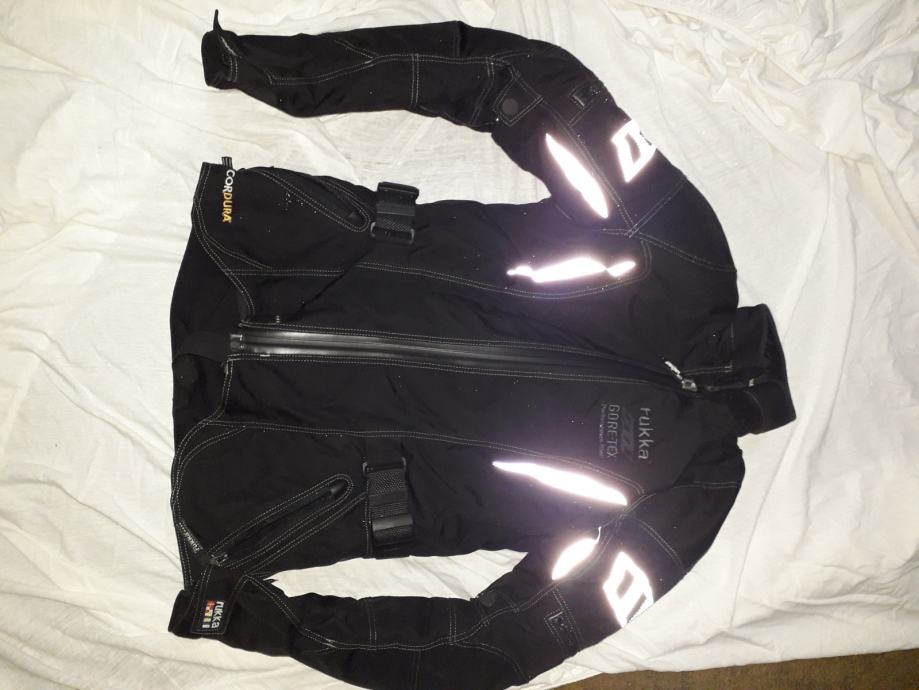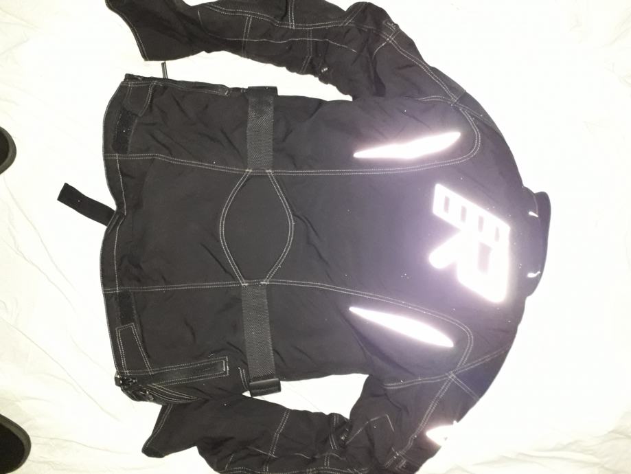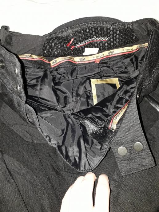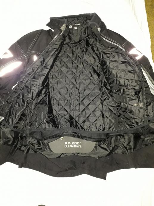 Jakna ima dodatno kupljene protektore na leđina ramenima i laktovima, također i hlače na zdjelici i koljenima..