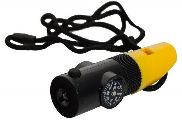 Wake up and whistle a happy tune! But this novelty item does a lot more: it also shows you the temperature and enables you to magnify things, or to look at your image in the mirror. The mini torch lights the way for you in the dark and the compass means you'll always know the right way to go! The 6in1 multi-function whistle!