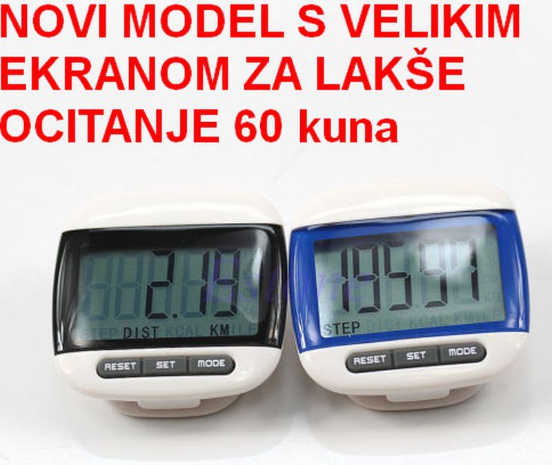 mjeri broj prijeđenih koraka te iste preračunava u udaljenost prijeđenih kilometara i potrošenih kalorija. Uputstvo, novo