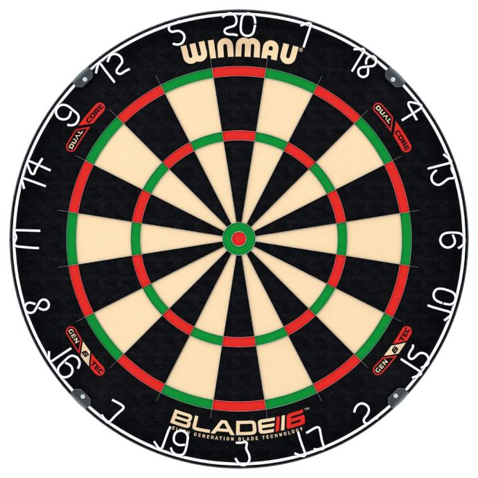 S promjerom od 45 centimetara i debljinom od približno 4 centimetra, pikado meta Winmau Blade 6 Dual Core ima službene turnirske dimenzije.
