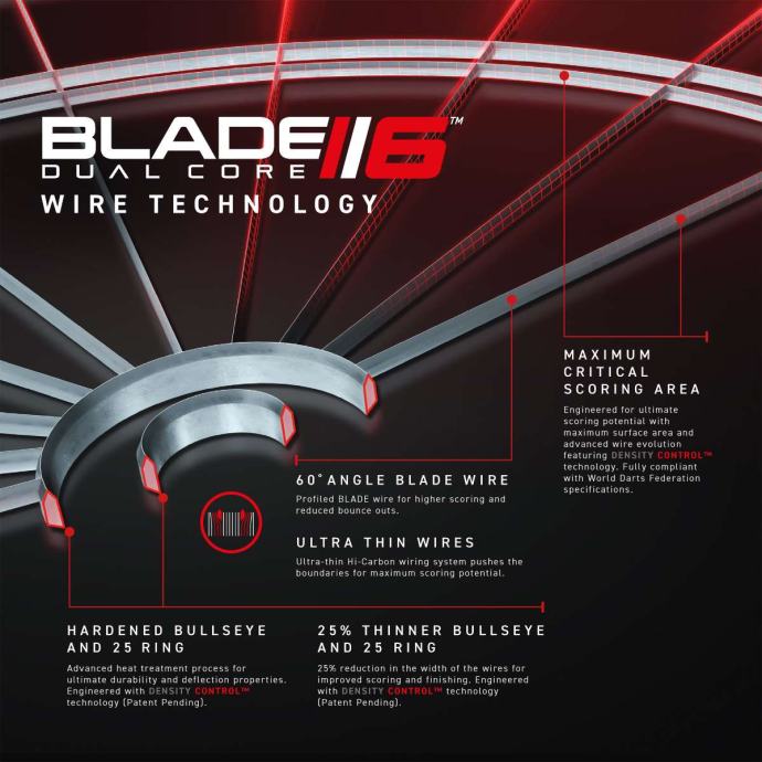 Blade 6 Dual Core koristi Winmau patentiranu dual-core tehnologiju. Dva različito prešana sloja sisala osiguravaju besprijekornu, vrlo vidljivu površinu za igru i bolje rezultate.