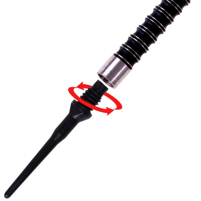 Blago konusni oblik u prednjem dijelu vrha dugog 25 mm osigurava savršeno držanje daske i olakšava izvlačenje strelice. Ojačanje u stražnjem dijelu vrha osigurava visoku stabilnost i dugovječnost.