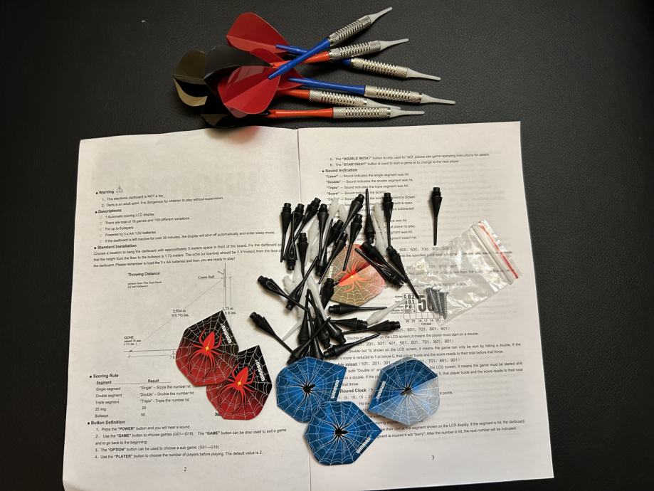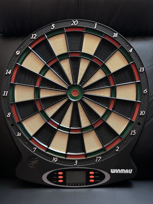 Pikado Winmau na baterije sa mini ekranom do 8 igrača sa igrama 301,501,cricket,simple cricket,golf,bingo,big little,killer,shoot out...sa 6 strelica,pera i špica