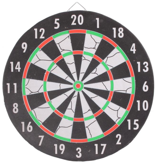 Dvostrani pikado za više zabave. Možete birati između dvije mete. Na svakoj strani ćete naći drugačiji izgled. Uključuje 2 kompleta od 18 grama čeličnih/mjedenih strelica s plastičnom drškom i percem.