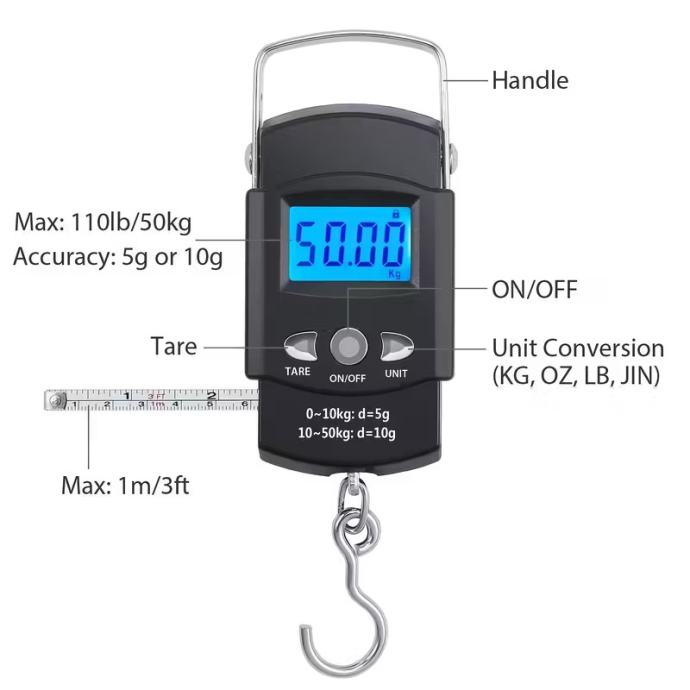 kolzp 1 kom 50,0 kg/0,35 oz Precizna prijenosna digitalna viseća vaga | Visokoprecizni LCD zaslon s mjernom trakom za putovanja kamperima i ribare - kompaktna i svestrana za avanture na otvorenom, idealna za Božić i Dan zahvalnosti