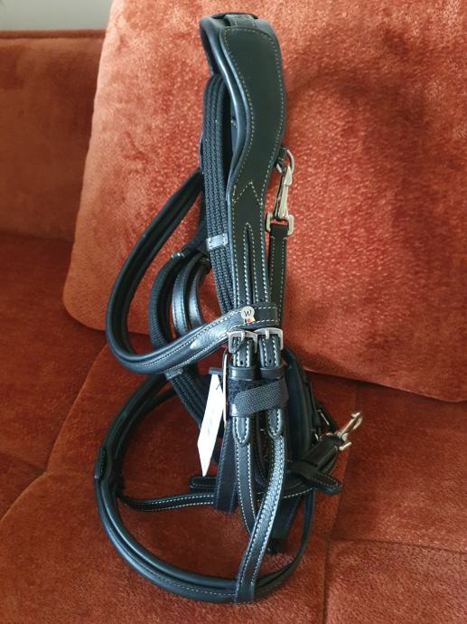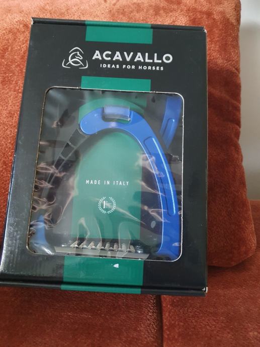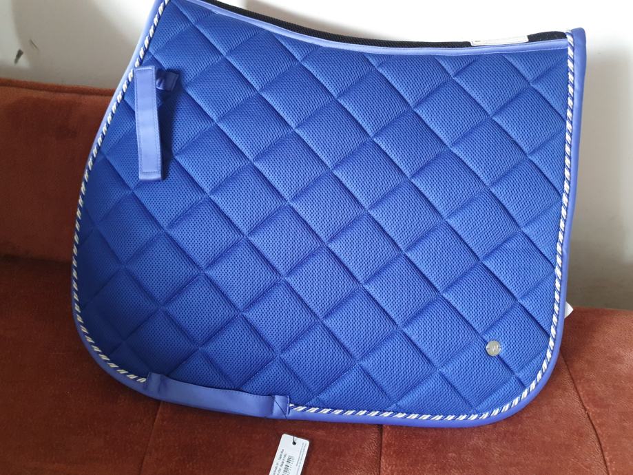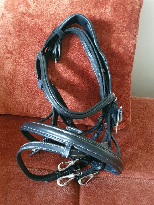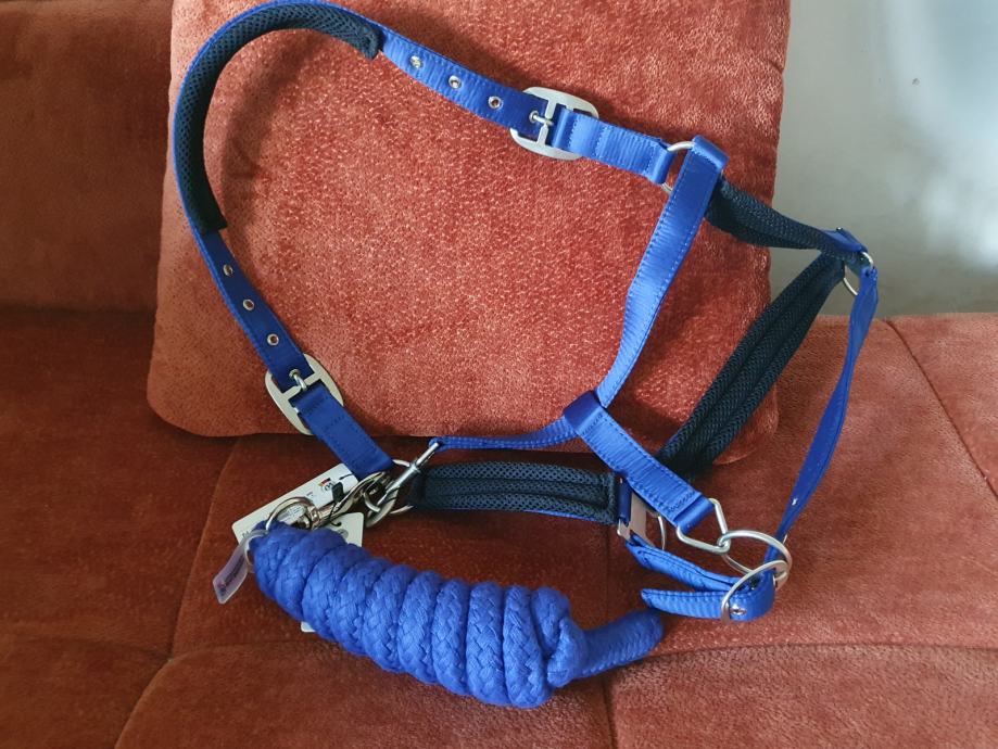 Žvala: dvostruko lom.20mm.Uzda: X line work crna COB. Povodac economic s karabinerom. Ular breath safir plavi COB.2 kapice za uši, basic safir plava FULL, kapica za uši BR EVENT Sodalite. Ljetna prozračna podsedlica koja hladi konja, saphire plava. Equestro podložak, L veličina, color black. Acavallo uzengije, plava, one size. Acavallo terapeutski gel podložak, color black, one size. Fouganza kaciga, M veličina, color black. Prodaja u kompletu.