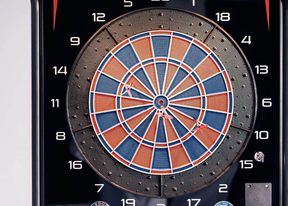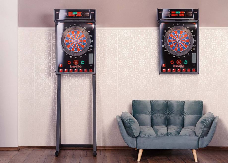 Profesionalni elektronski pikado aparat, dizajniran u turnirskoj kvaliteti za do 4 igrača, nudi izvanredno iskustvo igranja. Uređaj standardno dolazi s praktičnim zidnim nosačem koji omogućuje jednostavnu ugradnju izravno na zid. No, zahvaljujući crnom postolju pikado aparata koje štedi prostor, moguće je postaviti uređaj i samostojeće bez pričvršćivanja na zid.