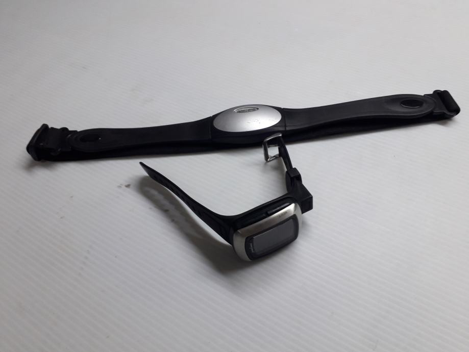 Pulse Sonic set, sat (otkucaji srca, štoperica, vrijeme), pojas (EKG kardiotransmiter / puls mjerač), kratko korišteno, ispravno (potrebna promjena baterije).