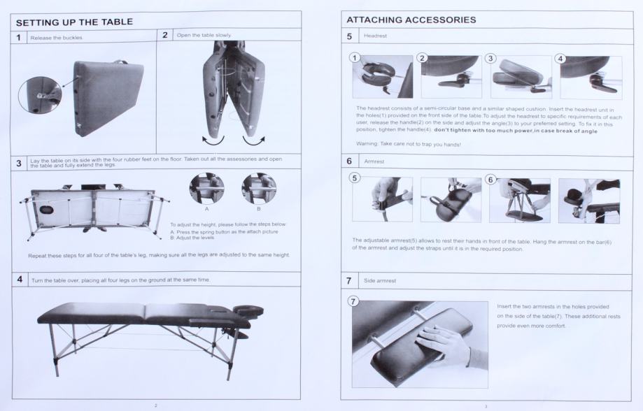 Merco Release je sklopivi stol za masažu s dvodijelnom konstrukcijom od aluminija. Vrlo je lagan te dolazi u setu s praktičnom torbom za prenošenje od otpornog poliestera. Postavljanje stola je brzo i lagano te Vam za to ne treba nikakav alat. Potrebno je rasklopiti sredinu stola, namjestiti visinu nogu (jednostavni sustav Pin-Up), namjestiti nastavak za glavu, prednju dasku za ruke i bočne držače. Stol je izrađen od sintetičke kože i mekane pjene debljine 4 cm te se jednostavno čisti mokrom krpicom. Osnova stola je dimenzija 183 x 70 cm, sa svim dodatnim komponentama je ukupnih dimenzija 210 x 90 cm, a visina je podesiva od 60 cm do 83 cm (stupnjevi visine su 3 cm razlike). Cjelokupna težina s torbom je 5,5 kg, a sklopljen je dimenzija 95 x 17 x 74 cm. Maksimalna nosivost je 200 kg.