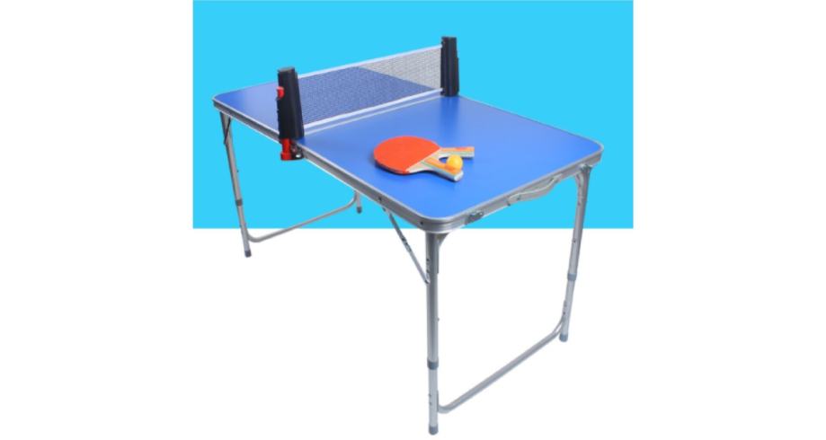 Kid Pong sklopivi mini stol za stolni tenis idealno je rješenje za igru u malim unutarnjim ili vanjskim prostorima. Bilo da organizirate obiteljsku zabavu, radni team building ili želite na originalan način zabaviti svoju djecu, s ovim mini stolom Kid Pong dobro ćete se zabaviti. Stol ima dimenzije 120 x 60 cm i podesivu visinu (54/61/70 cm). Konstrukcija od aluminijske legure i izdržljivi plastični gornji dio lagani su i jednostavni za spremanje ili nošenje. Pakiranje uključuje mrežicu smotanu u plastične držače, dvije osnovne lopatice za stolni tenis s osnovnom navlakom i 3 loptice u mrežastoj vrećici.