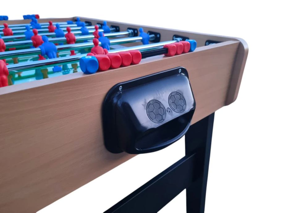 * Brojač golova i otvor za loptice na obje strane nogometa.