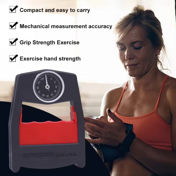 Ručni uređaj za jačanje stiska s 130 mjernih jedinica - Prijenosni ergonomski tester stiska za kućnu teretanu, trening i rehabilitaciju - Izdržljiv dizajn bez baterija, uređaj za vježbanje snage stiska, jasna mjerna skala, lako čitljiva skala