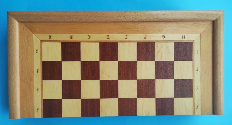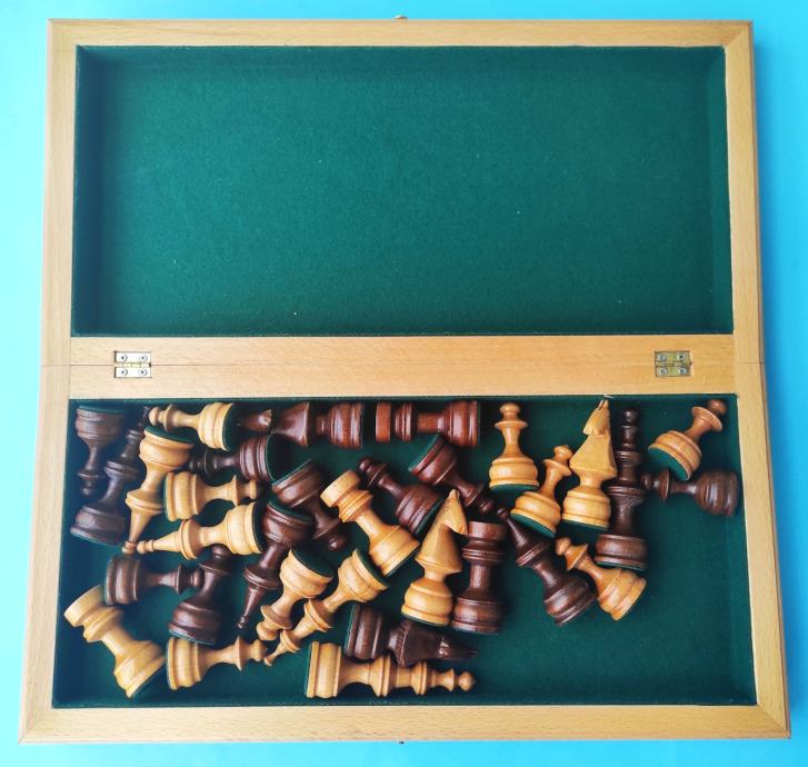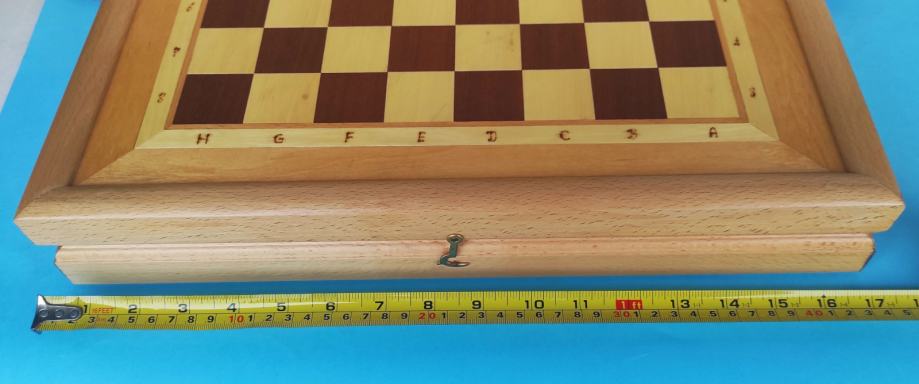 Vrhunski hrvatski proizvod, izuzetno kvaltetan šah, vrlo masivan, težak, velikih dimenzija (kad je otvoren dimenzije su 43 x 42 x 3.5 cm).
