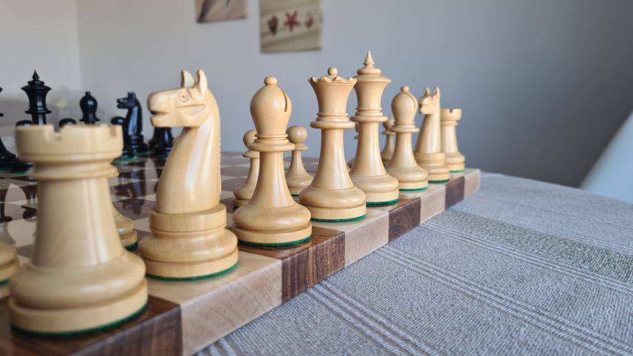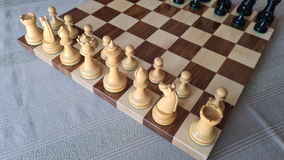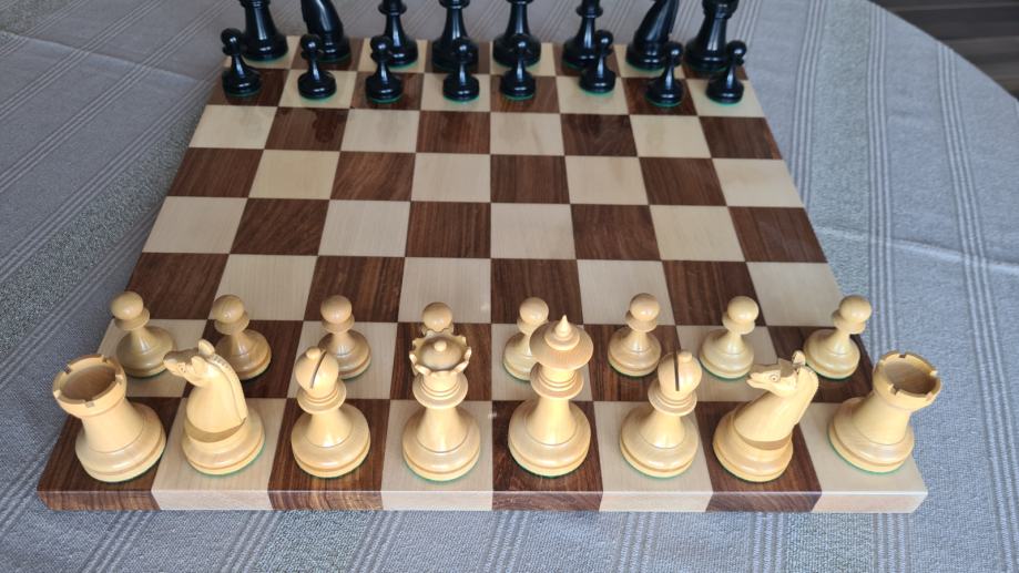 Profesionalne šahovske figure, originalna cijena 332 eura, otežane, crne figure od prave ebanovine, prirodna crna boja drveta, svijetle figure od boxwooda, težina 1,5kg, ploča nije uključena u cijenu