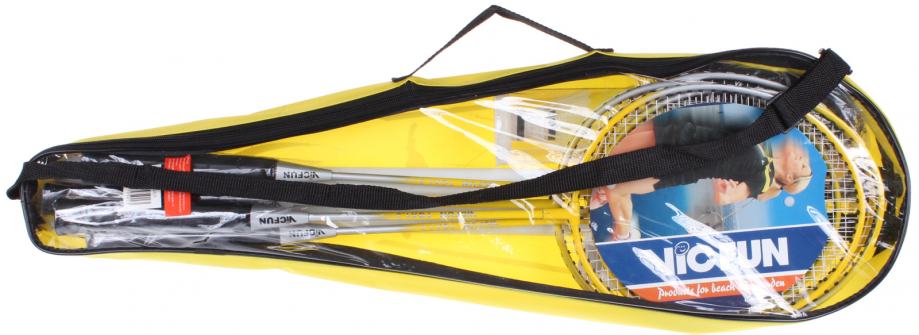 Set za badminton VicFun Set A najbolji je izbor za one koji svaki slobodan trenutak žele posvetiti badmintonu. VicFun Set A sastoji se od 4 gotovo neuništiva reketa od čvrstog čelika, dvije loptice od najlona s glavom od pjene, mreže s konstrukcijom prilagodljive visine i vrpcama za učvršćivanje. Komplet dolazi u praktičnoj prijenosnoj futroli s remenom za nošenje preko ramena.
