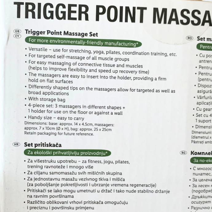 - za masažu ciljanih točaka na tijelu, može se staviti na pod ili ma zid ili bilo gdje, a mogu se držati u ruci te tako masirati
