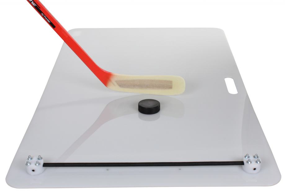 Merco Shooting Pad Rebounder pomagalo za trening hokeja, spoj shooting pad daske za vježbanje udaraca i reboundera. Daska je izrađena od polietilena visoke gustoće, duljine 130 cm, širine 77 cm i debljine 7 mm. Rebounder se sastoji od plastičnih baza s gumiranom trakom duljine 55 cm i promjera 1 cm između njih. Shooting Pad Rebouder teži 5 kg.