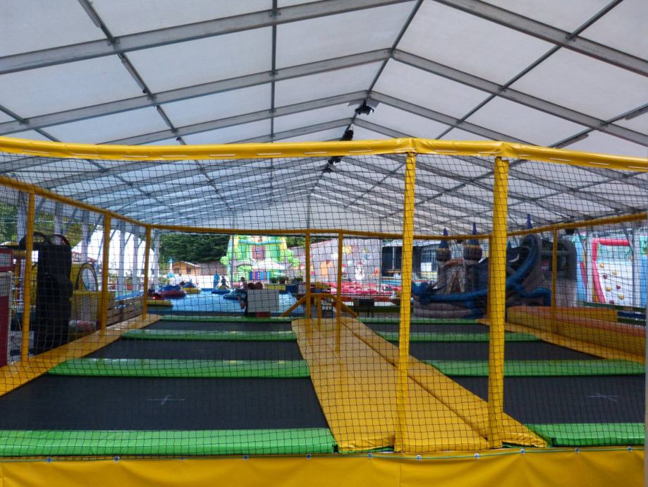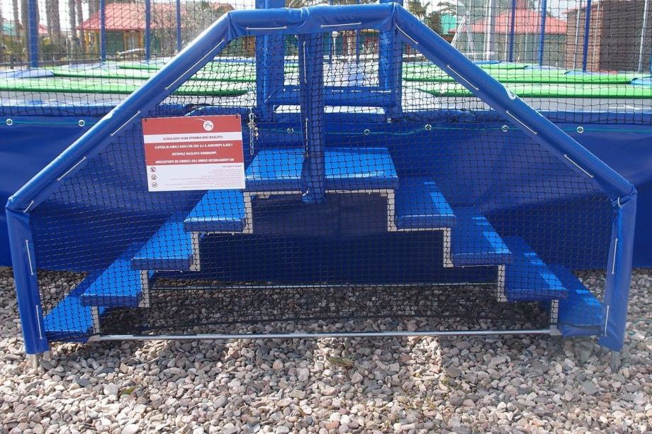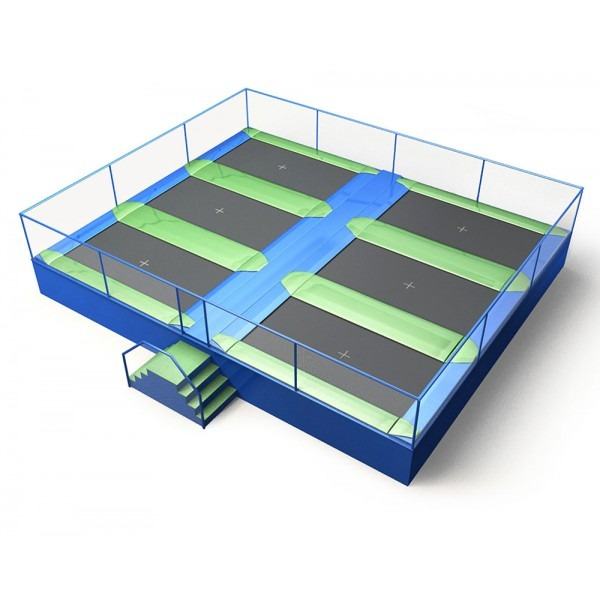 Mogu biti izrađeni u različitim kombinacijama oblika i broja skakačih polja, za prihvat različitog broja skakača. Čvrsta potporna konstrukcija daje stabilnost na različitim vrstama površina (podloga). Zaštitu skakačima pružaju heavy duty zaštitne strunjače i zaštitna mreža – ograda.