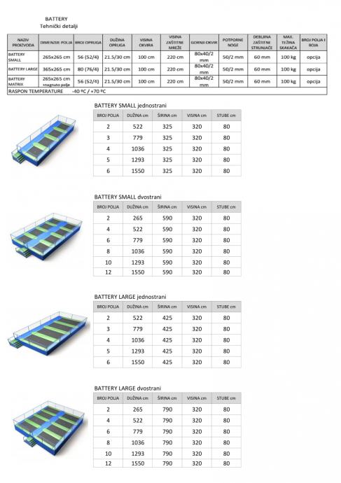 Battery je modularni – sistemski trampolin koji pruža mogućnost, nesmetanog istovremenog, korištenja većem broju skakača. Ovi visoko kvalitetni trampolini su konstruirani za intenzivnu upotrebu i maksimalnu sigurnost korisnika.