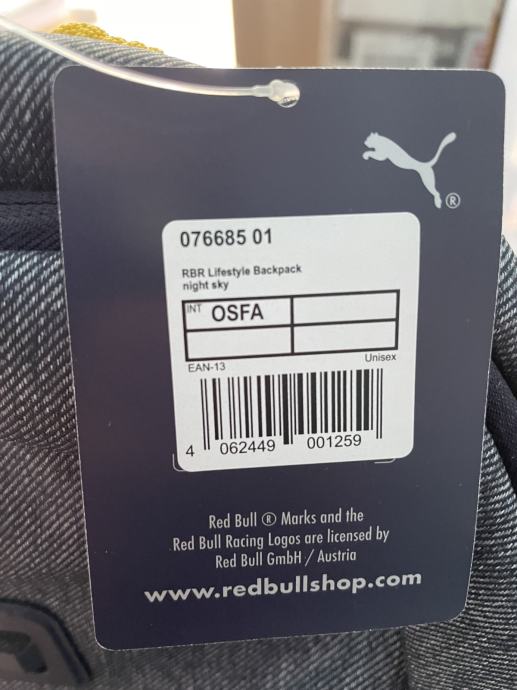 Prodajem sportsku torbu, ruksak, backpack, Red Bull Racing Formula One Team ORIGINAL, proizvođač PUMA, boja: NIGHT SKY, torba, ruksak, backpack je potpuno nova, nekorištena (stanje kao na slikama a izvađena je iz originalnog pakiranja samo radi slikanja), dobivena na Red Bull nagradnoj igri, zvati na mob: 098/634-603 ili mail: drakaric@net.hr