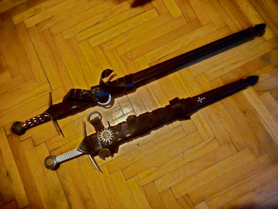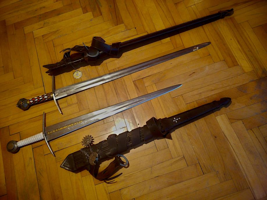 Mačevi su vrlo kvalitetni, ručno kovani, imaju izraženu puniju 2/3 duljine oštrice, čeličnu križnicu, kvalitetnu drvenu dršku, (bijelu presvučenu kožom), (jedan od njih) ojačanja mjedenim prstenima, te sklop čvrsto drži čelični pečat ukovan na oštricu, -prema pravim povijesnim primjerima.