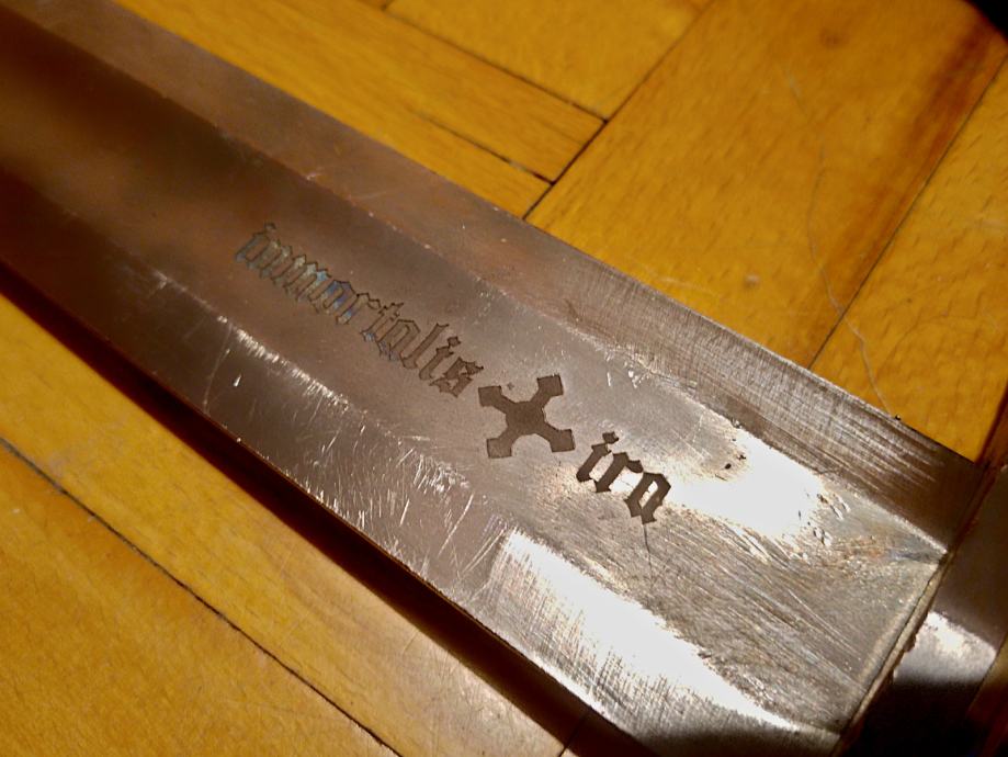 Mač sa drvenom crveno-bijelom drškom: ukupna duljina oko 102cm, izrazito dobar balans i agilnost, ima gravuru "Inmortalis Irae" (Gnjev Besmrtnika).